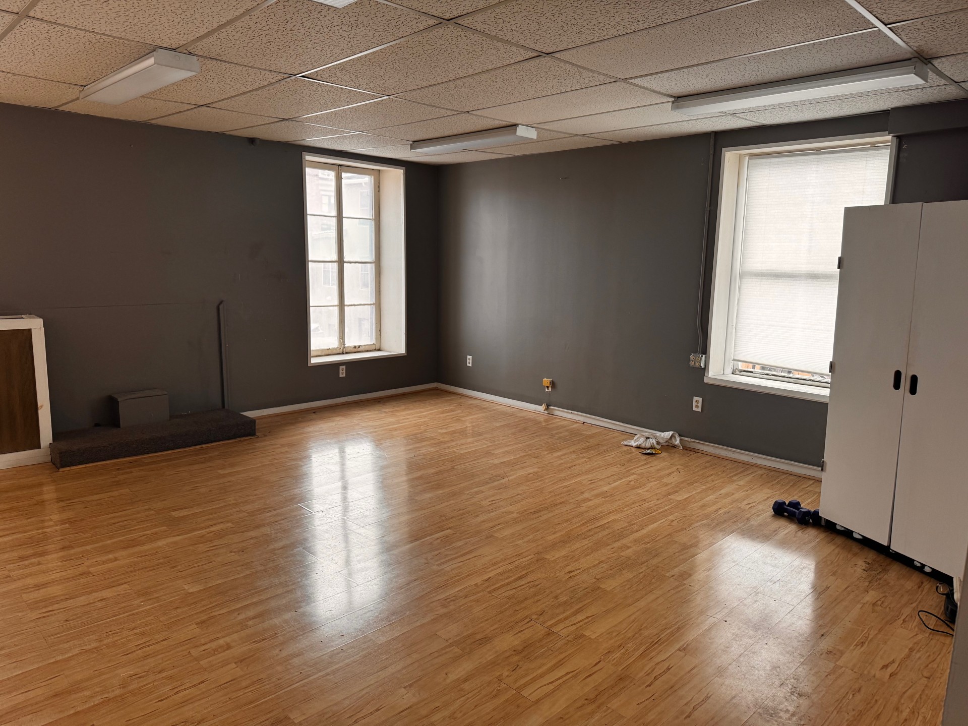 3A: 430 SF – Beautiful 2 room office with vintage French door divider. Fresh paint and carpet throughout, large windows with ample sunlight